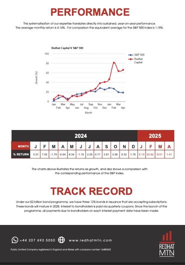 Redhat’s trading philosophy encompasses a wide range of asset classes, and hedging strategies including commodities, futures & options, indices, arbitrage and FX.